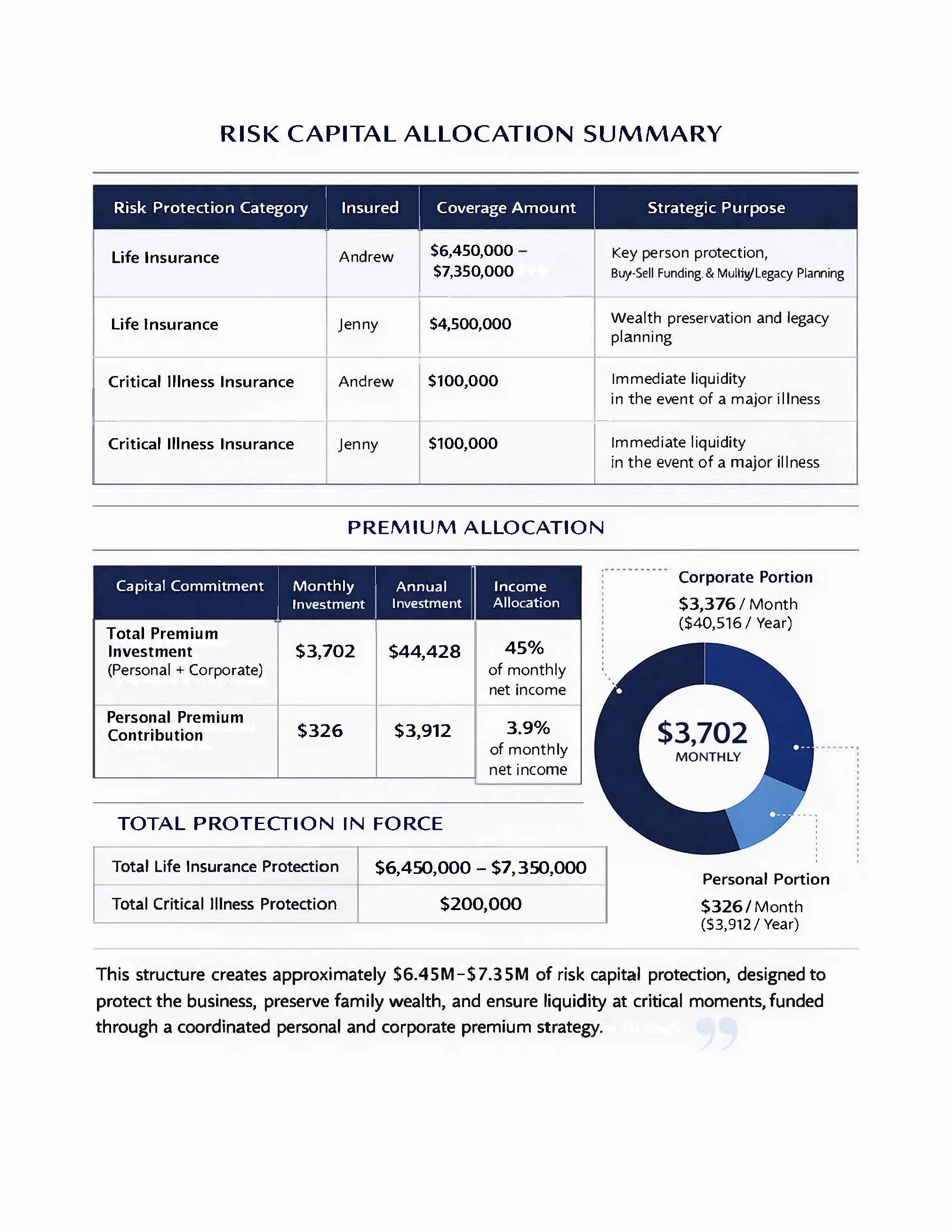 For Jenny and Andrew, the exercise wasn’t only about determining how much insurance they should buy from a mechanical lens. It was about learning how thoughtful, sophisticated wealth planning transforms uncertainty into structure, risk into resilience, and income into enduring wealth, from a capital engineering perspective.